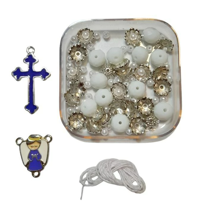 Contém todas as peças para você montar o Kit Terço Infantil - Roxo